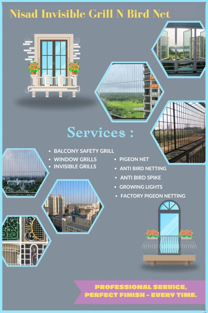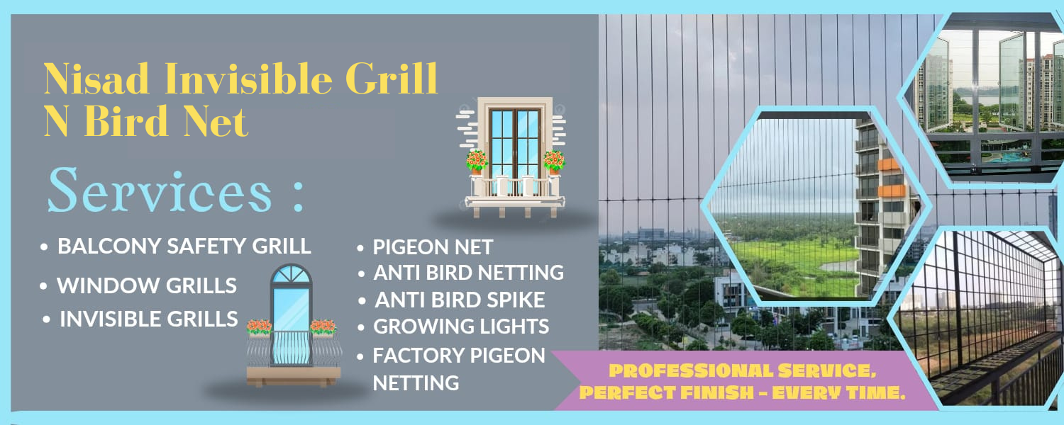 Nisad Invisible Grill N Bird Net is a trusted Invisible Grill and Bird Net Installation service provider, dedicated to creating safe and elegant spaces for homes, apartments, offices, and commercial buildings. We specialize in premium-quality invisible grills and durable bird netting solutions that provide strong protection without compromising on aesthetics. Our safety grills are designed to keep your loved ones — especially children and pets — safe, while also preventing pigeons and other birds from entering your space.